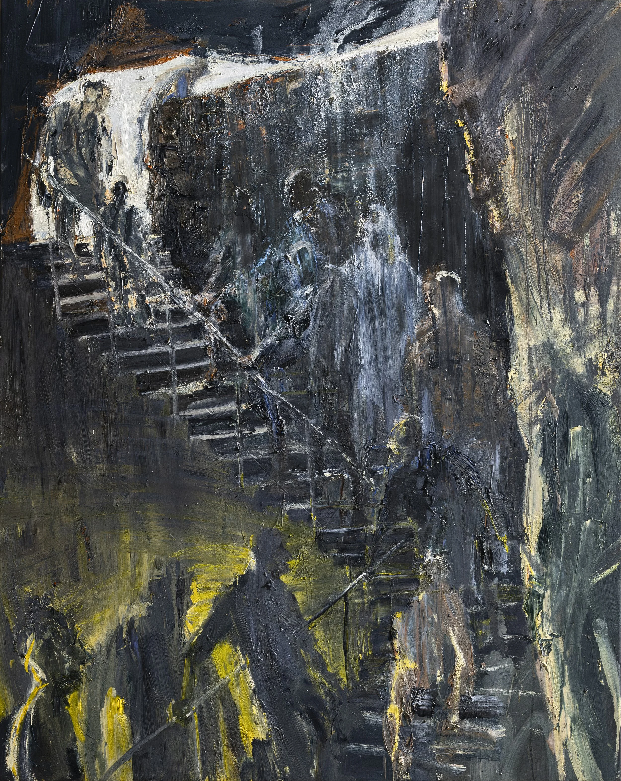 This painting is loosely based on an artist's trip in 2016 to Huangshan in China. I found the labyrinth of stairs, tunnels and narrow tracks that crisscross the precipitous mountains visually inspiring.
