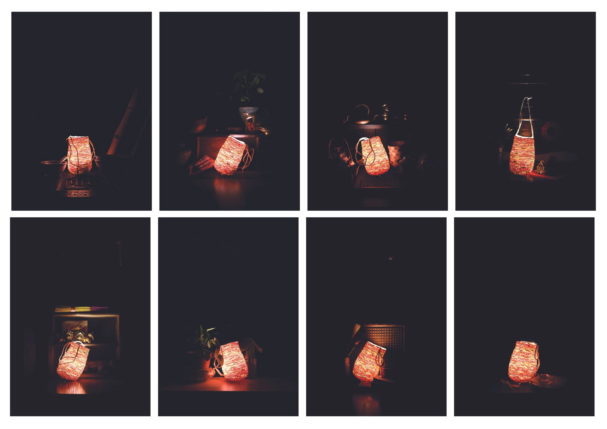 This work comprises eight still-life photographs that explore the domestic and internal landscapes shaped by my mixed Aboriginal–Chinese heritage. Each image is constructed from everyday objects drawn from my childhood home, items that hold both cultural specificity and intimate personal memory. Shot at night, the scenes are illuminated only by a small woven dillybag crafted from Chinese calligraphy paper and stamped with my family name, 李 (Lee). In darkness, the dillybag becomes a lantern: a quiet, glowing centrepoint that casts light onto objects, revealing their presence in the still of night.